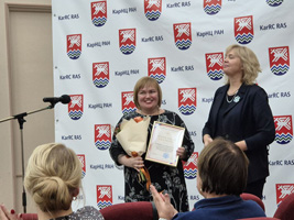 Состоялось торжественное заседание Ученого совета КарНЦ РАН, посвященное 95-летию Института языка, литературы и истории КарНЦ РАН. С докладом «Верность науке и общественное служение: к 100-летию со дня рождения директора ИЯЛИ КарНЦ РАН М.Н.Власовой» выступила к.и.н. Е.Ю.Дубровская. Чл.-кор. РАН д.ф.н.И.И.Муллонен рассказала о новом журнале Studia Nordica и его первом выпуске, опубликованном накануне юбилея. Сотрудникам института были вручены награды, грамоты и благодарственные письма.